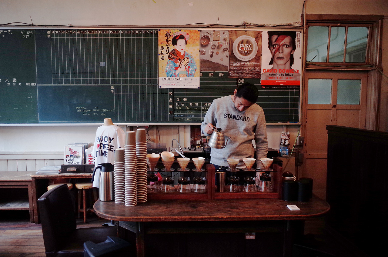낡은 나무 책상과 의자, 걸음마다 삐걱대는 마룻바닥, 용도를 잃은 칠판. 1993년 폐교한 초등학교 교무실의 흔적을 고스란히 간직한 트래블링 커피는 그 이름처럼 과거의 어딘가로 시간 여행을 떠나는 기분을 선사한다. 하물며 카페로 향하는 길마저도 인상적이다. 다카세 운하를 따라 걷다 마주친 옛 학교의 정문을 지나 한때는 아이들로 가득했을 복도에 들어서면 아릿한 바람이 마음을 스친다. 까맣게 잊고 있던 추억이 우르르 몰려나온다. 핸드드립으로 내리는 커피는 300엔이라는 저렴한 금액이 무색할 만큼 맛이 좋다. 커피 애호가라면 이곳에서 열리는 ‘인조이 커피 타임ENJOY COFFEE TIME’ 일정을 미리 확인해 보길. 커피를 테마로 한 부정기이벤트로 교토의 유명 카페를 한자리에서 만나볼 수 있다.
