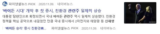 신재생에너지 분야(친환경)로 증시 주도주가 바뀌게 된다.