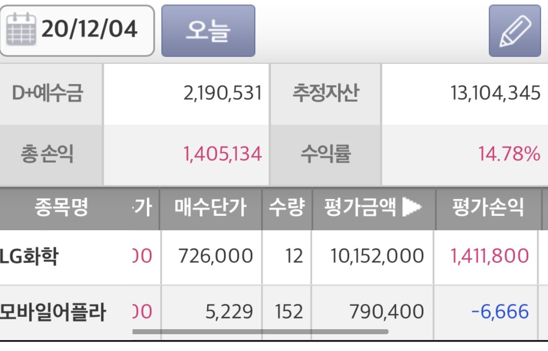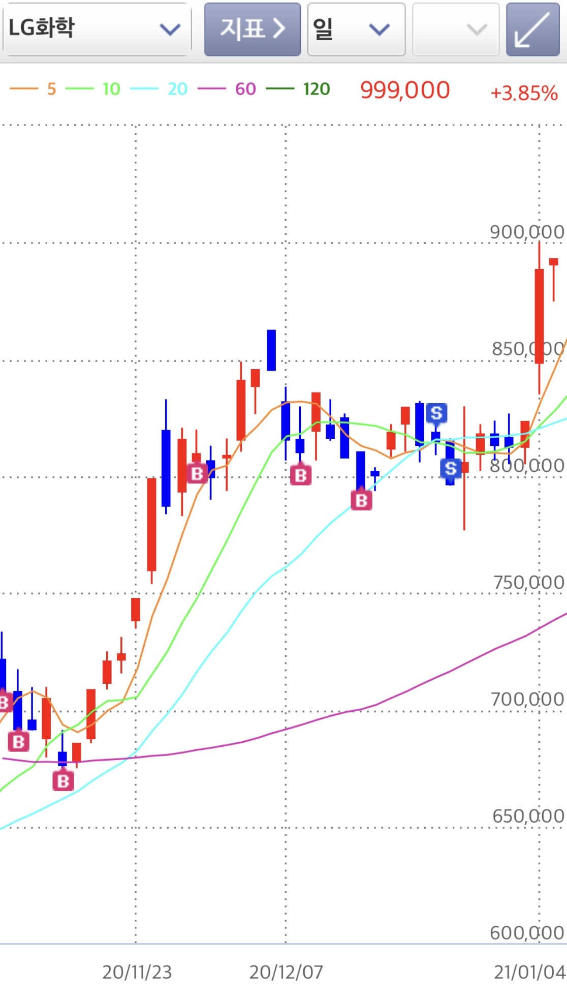 LG화학은 며칠 뒤에 내 목표가였던 100만 원을