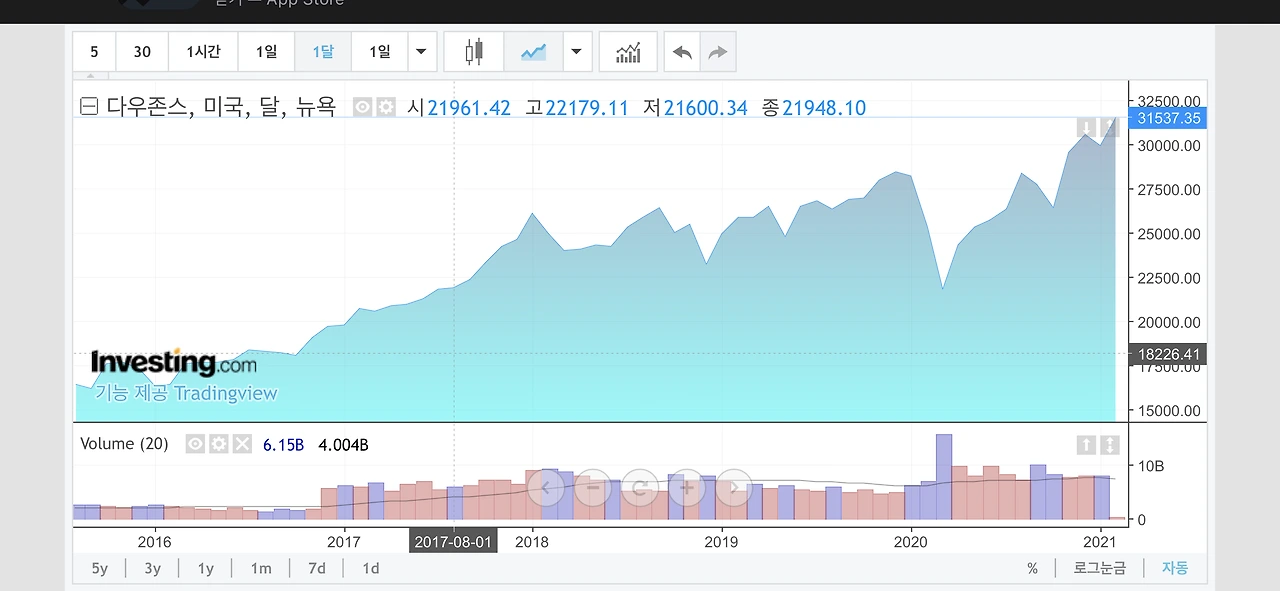 미국 다우지수는 역시나 최고 호황을 누리고 있었다.