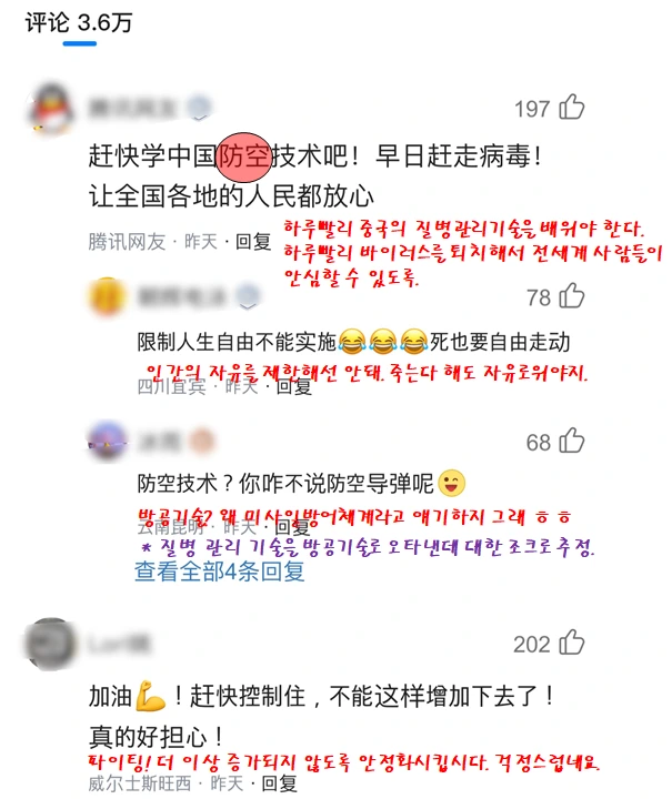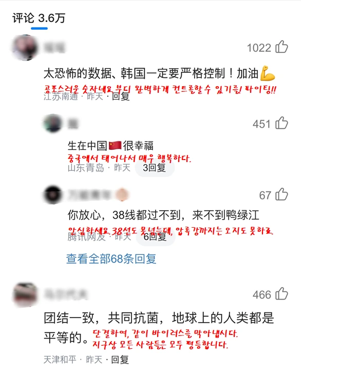 아래부터는 해당 기사에 달린 중국인들의 댓글이다.