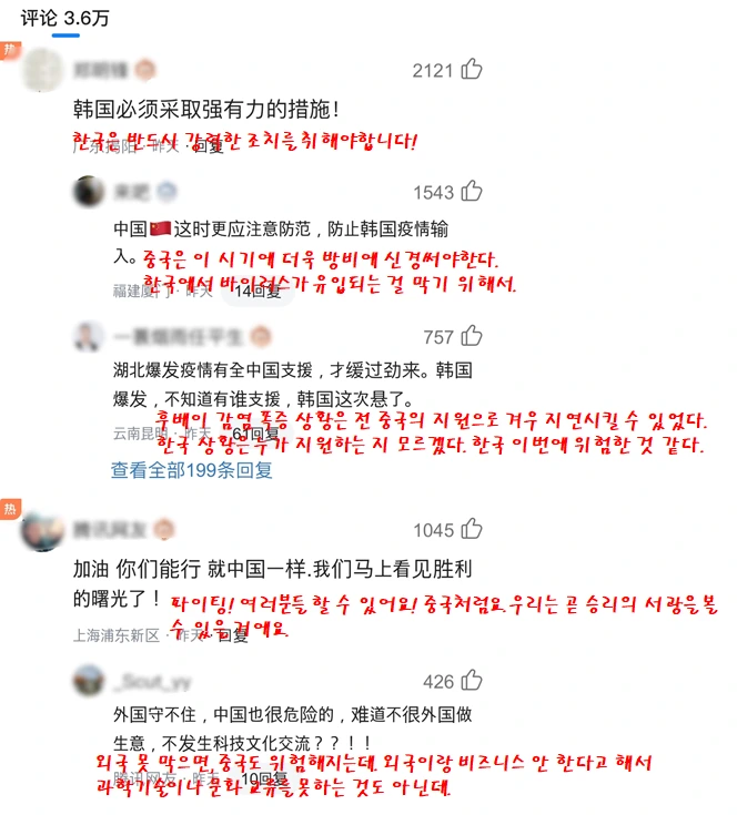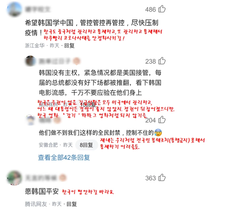 최근 국내 코로나 확진자 급증에 따른 중국 현지 반응