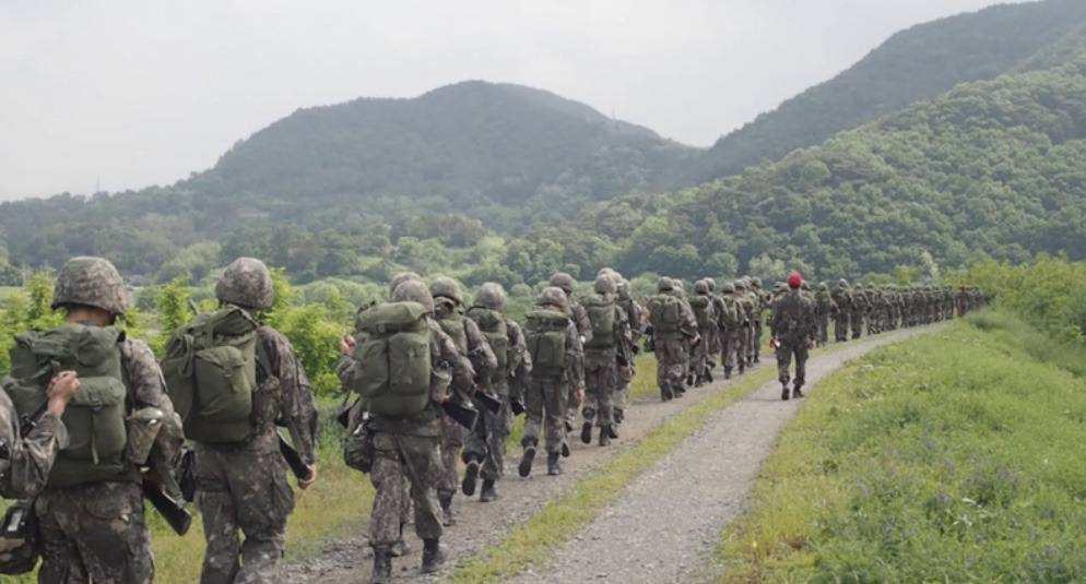 행군(야외 종합훈련)은 2박 3일 동안 완전군장 상태로 약 100KM의 코스를 걷는 훈련이다. 단순히 걷기만 하는 건 아니고, 행군 중간중간에 방독면을 써야 하는 상황이나 공중 지향사격을 해야 하는 상황 등 각종 상황이 부여되기도 한다. 행군이 만약 100KM 내내 평지로만 이뤄진 코스라면 이미 체력이 올라올 대로 올라온 우리에겐 그저 산책 정도에 불과했을지도 모르겠다. 그러나 임관 전 최종 보스인 행군이 그렇게 만만하지만은 않다.