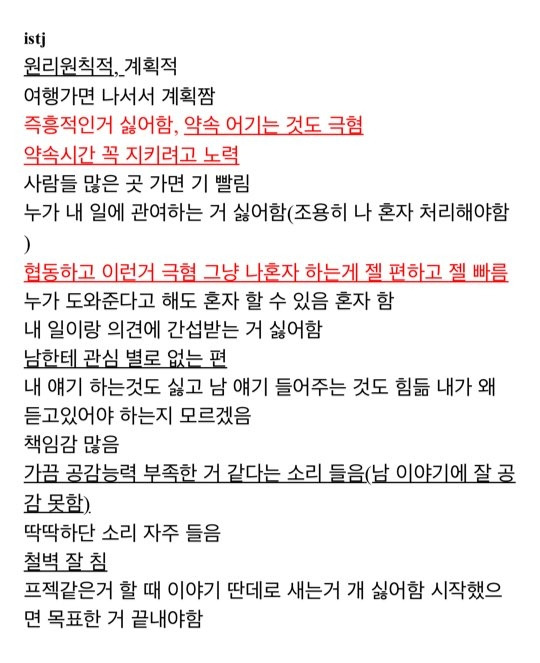 인터넷에서 'ISTJ 유형 인간'에 대해 적나라하게 묘사한 내용을 찾아 첨부해보았다.