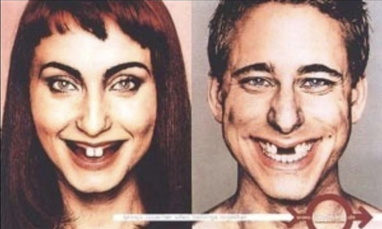 윗니 두 개만 있는 여자와 그 두 개만 없는 남자.