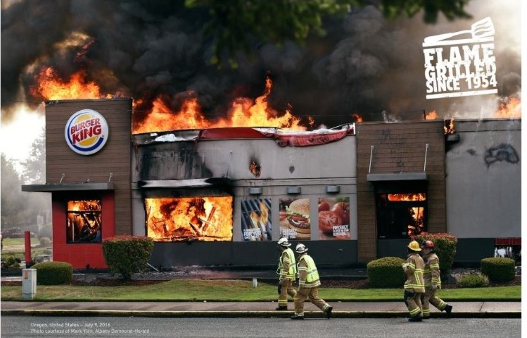 불타는 버거킹의 역전 메시지를 어떻게든 움켜쥐고