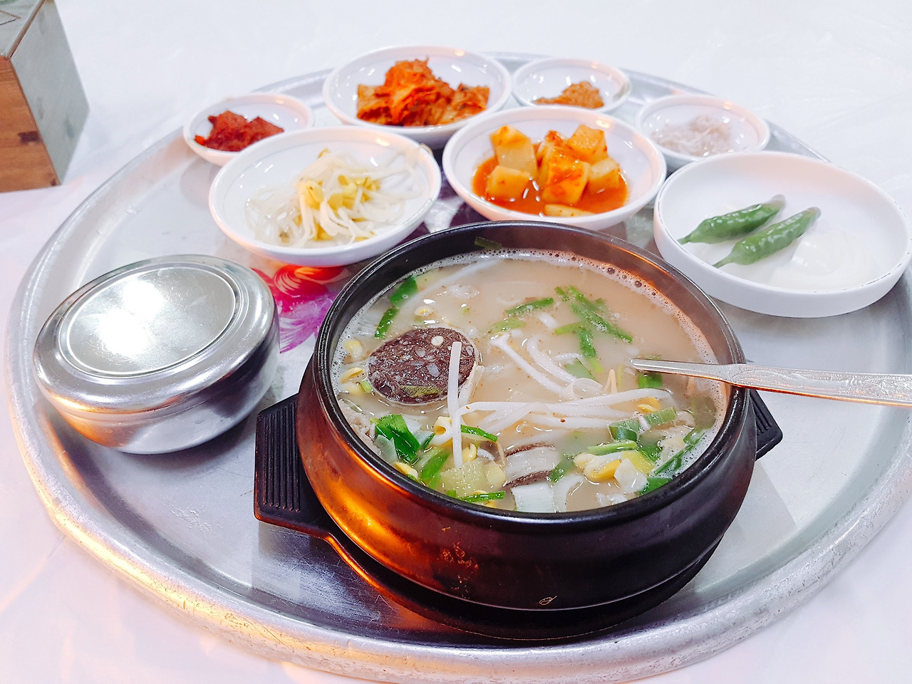 동트기 전에 출발한 탓인지 부쩍 허기가 졌다. 캐리어를 맡기기 위해 숙소에 들렀고 맛집을 적어둔 지도를 살펴보다가 가까운 시장 안에 순대국밥집이 있다는 걸 알게 되었다. 상세 정보를 훑어보기도 전에 나는 이곳에서 맛있는 아침을 먹을 수 있음을 직감했다. 보통 전통시장은 이른 아침부터 영업을 시작하므로 상인을 위한 아침 식사를 제공하는 식당이 많다. 그리고 손님이 많지만, 한편으로는 영업하는 식당도 많은 시장에서 맛집으로 꼽히는 곳이라면 적어도 식당이 갖춰야 할 덕목을 두루 충족하는 곳일 가능성이 크다. 토종 한국 입맛인 사람이 여기저기 쏘다니며 얻게 된 변변찮은 통찰력이랄까.