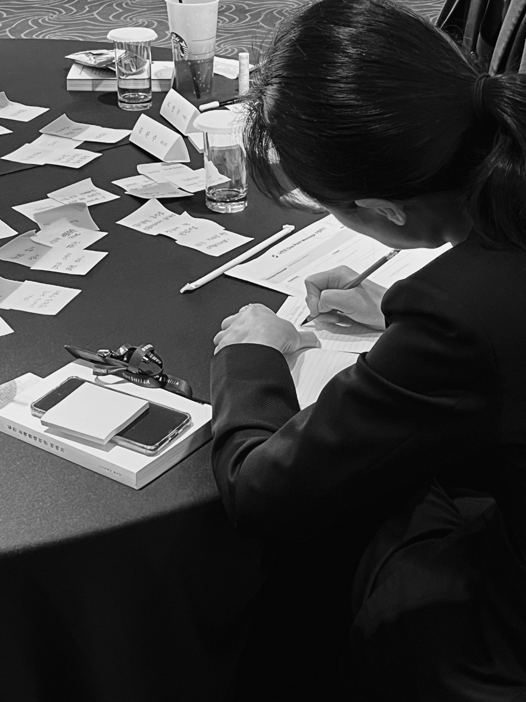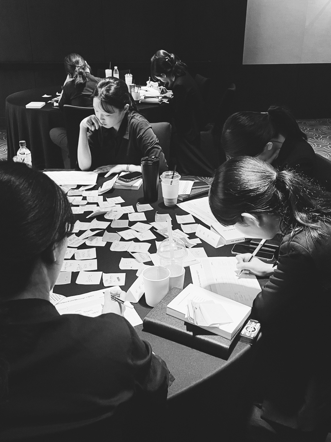스토리 소사이어티에서 직접 개발한 스토리 툴킷을 바탕으로 개인 별 이야기를 실제 프레젠테이션으로 기획하는 워크숍을 진행하였습니다. 현장에서 바로 적용할 수 있는 고객 응대의 오프닝과 클로징 멘트를 개인 별로 구성하여, 개인 별 이야기가 녹아들 수 있는 진정성 있는 말하기를 현장에서 할 수 있도록 도왔습니다. 가장 인상 깊었던 장면은 서로의 이야기를 피드백하는 장면이었습니다. 그동안 구성원 서로가 서로에 대하여 어렴풋이 알고 있던 강점을 명확하게 인지할 수 있는 시간이었습니다. 누군가는 진심을 담은 응원의 메시지를, 누군가는 존경의 메시지를 서로에게 전달하여 따뜻하고 끈끈한 조직문화를 느낄 수 있는 시간이었습니다.