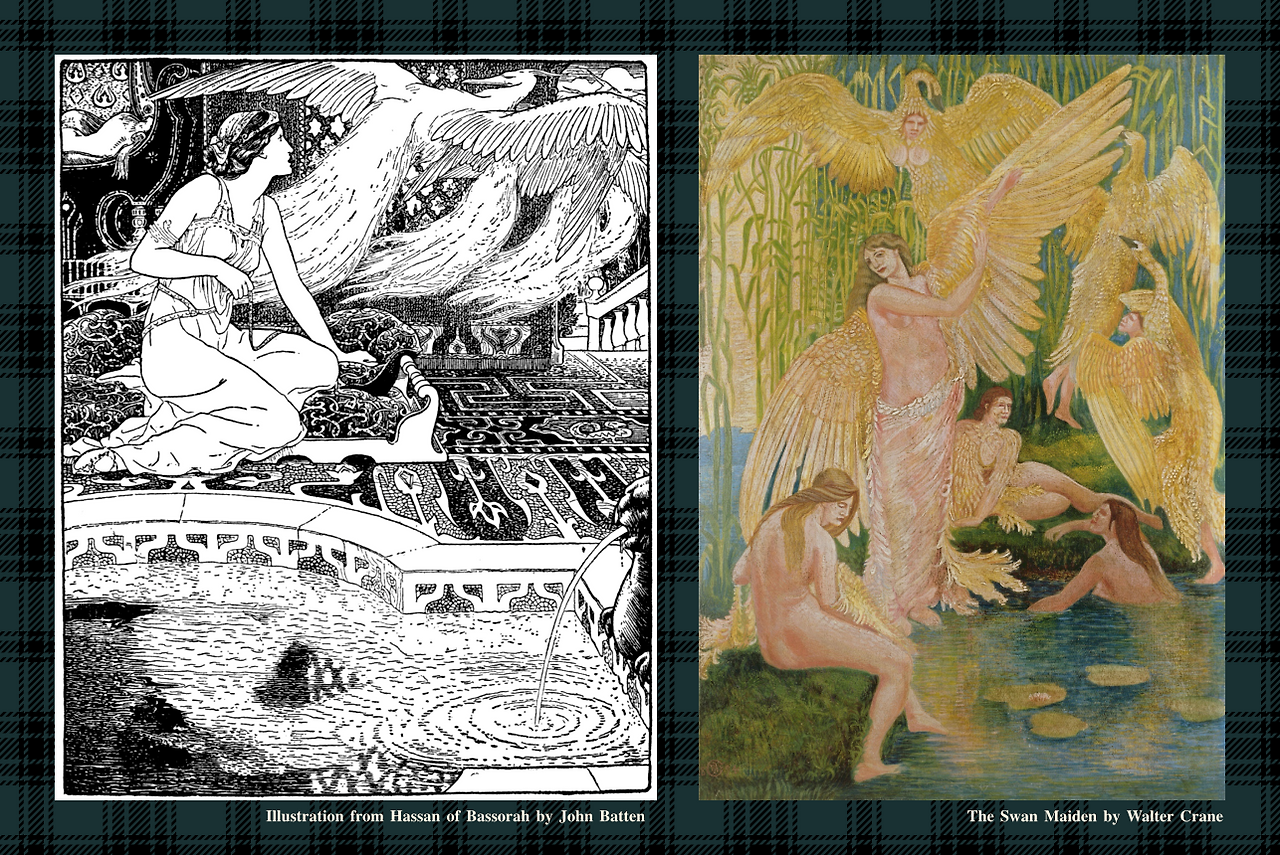 그곳에서는 모든 것이 변화한다. 얼음은 환상적으로 형태를 바꾸고 모래의 경계는 끊임없이 변화하고, 뼈는 흙이 되고 흙은 뼈가 된다. 그처럼 동물도 인간의 형상을 하고, 새들도 인간의 모습을 한다. 그곳에서는 모든 것에 마법이 살아 있다. 이러한 시절 어느 날 상아 사냥꾼이 한 무리의 바닷새가 여자로 변신하는 것을 보게 되었다. 하얀 가죽옷을 입은 사냥꾼은 하얀 눈 위를 살금살금 기어서 갑자기 여자들을 덮쳤다. 힘센 손으로 가장 가까이 있는 여자를 움켜잡자 다른 여자들은 다시 새로 변신해서 이상야릇한 비명을 길게 내지르면서 남쪽으로 날아갔다.