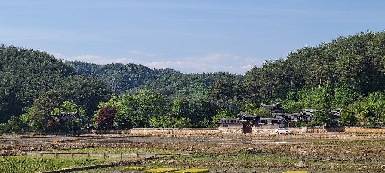 넘실넘실 풍요로운 논을 사이에 두고 멀리서 닭실마을의 권벌 종택을 바라봅니다. 참 단정합니다.