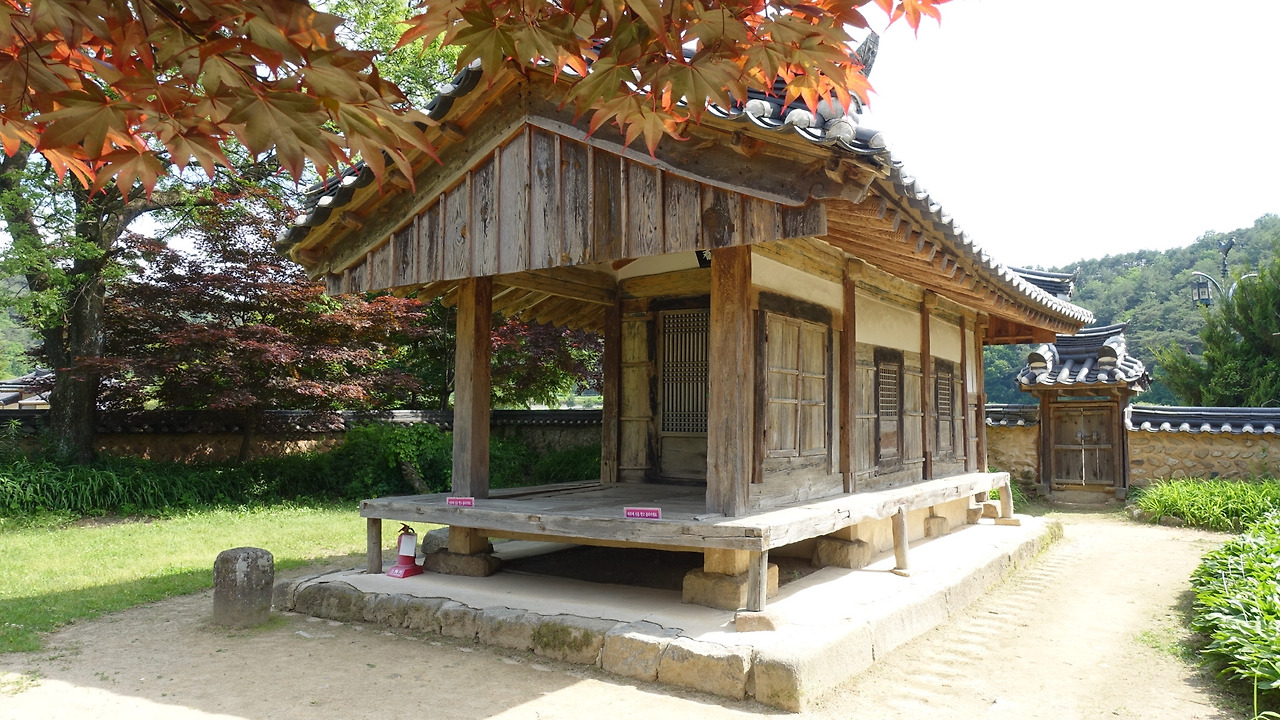 청암정에서 마당을 내려다보면 달랑 3칸짜리 소박하지만 귀품이 느껴지는 서재 ‘충재(沖齋)’가 돌다리 하나를 사이에 두고 청암정과 마주 보고 있습니다. 서재의 이름인 충재는 권벌이 자신의 호로 이름을 정했습니다. 청암정의 ‘청암’은 권벌의 큰 아들 권동보(權東輔, 1518~1592)의 호이기도 합니다.