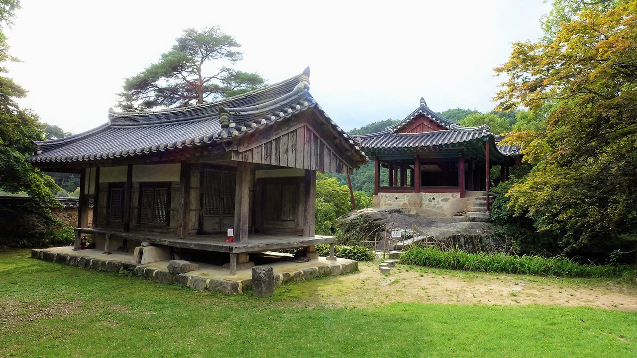 요즘 흔히들 말하는 두 건물의 ‘케미’가 돋보입니다. 불규칙적인 배치 안에 공간감과 역동성이 느껴집니다. 따로가 아닌 같이라 더 운치가 있습니다. 이곳의 아름다움을 알아본 옛사람들의 발걸음을 청암정 내부에서 찾아볼 수 있습니다. 미수 허목(許穆, 1595~1682)은 ‘청암수석(靑岩水石)’이라 전서체로 쓴 현판을, 남명 조식(曺植, 1501~1572)은 ‘청암정(靑岩亭)’ 현판을 남겼습니다. 권벌 사후 20여 년이 흐른 뒤 65세의 퇴계 이황(李滉, 1501~1570)은 이곳을 찾아와 권벌을 그리워하고 청암정을 칭송하는 ‘청암정제영시(靑岩亭題詠詩)’라는 시를 남겼으니 지금뿐 아니라 조선시대에 이미 스타 대접을 받은 듯싶습니다.