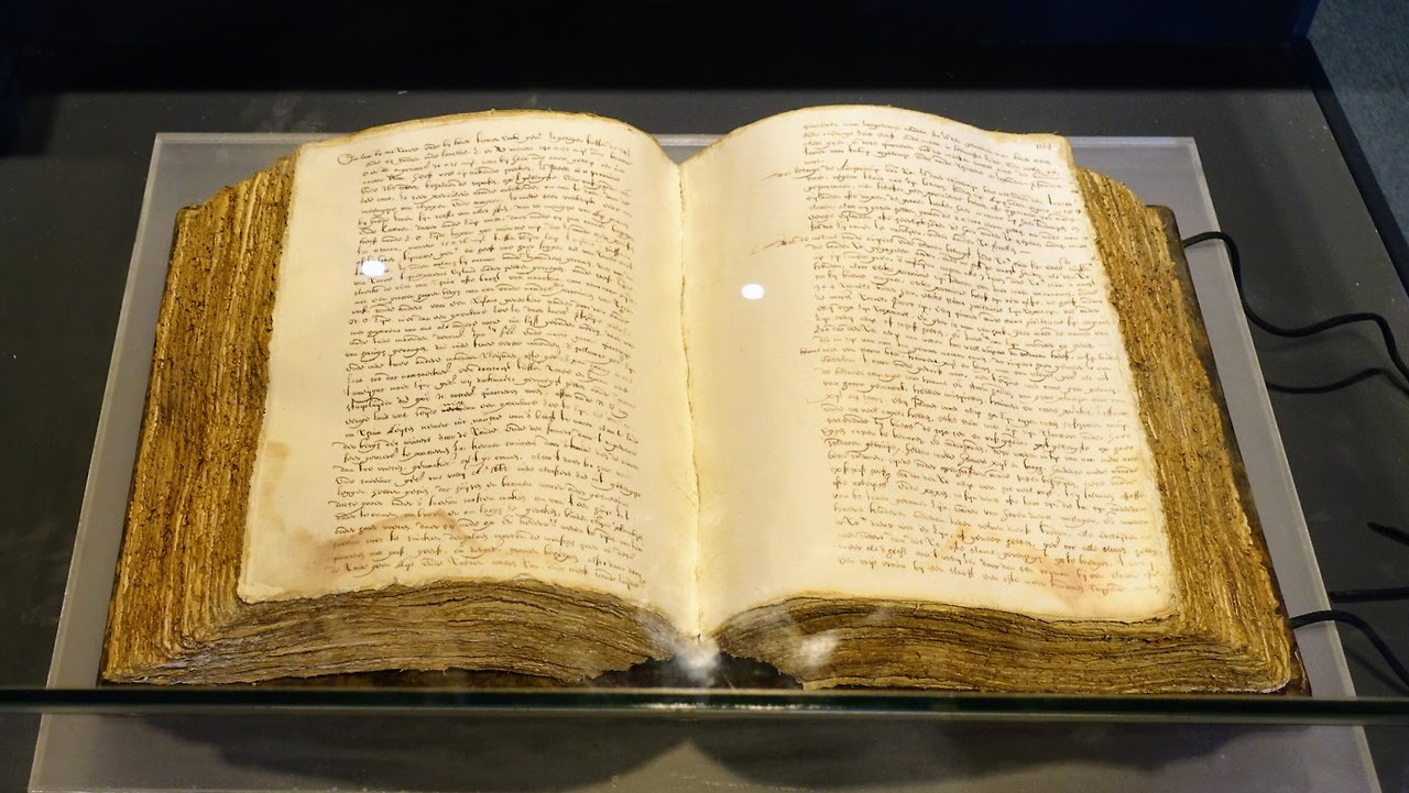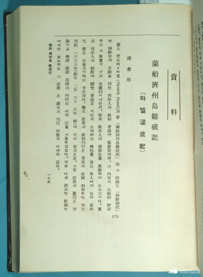 여수 하멜전시관의 『하멜 표류기』(1668) 육필원고 복제본으로 진본은 네덜란드 국립공문서보관소 소장, 오른쪽은 1934년 이병도가 영·불역본을 번역해 실은『하멜 표류기』