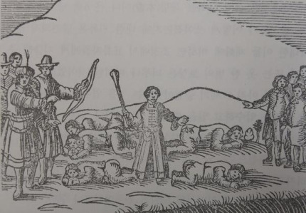 1668년 암스테르담에서 간행한 스티히터 판본에 실려있는 8장의 삽화(목판화) 중 일부-유럽 출판인들의 상상력이 가미된 조선의 모습이 재미있습니다. 효종이 유럽 왕의 모습이군요^^
