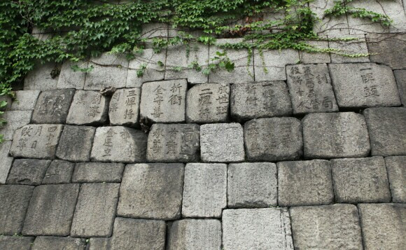 또 숙종 30년(1704)에도 대규모 보수공사가 있었는데요, 이때에는 도성 수비군인 오군영의 군인들을 불러 공사를 실시하고 감독관과 석공의 이름 및 날짜를 성돌에 새깁니다. 공사실명제라 할 수 있습니다. 이때의 성벽은 매우 견고하고 규격화되어 보기에도 질서 정연합니다. 축성 기술이 한층 발전했음을 알 수 있지요. 아무래도 민간인이 아닌 군인들의 솜씨라 그렇기도 하겠지만 돌에 자신의 이름을 새겨 넣는데 허술할 수는 없었을 것입니다.