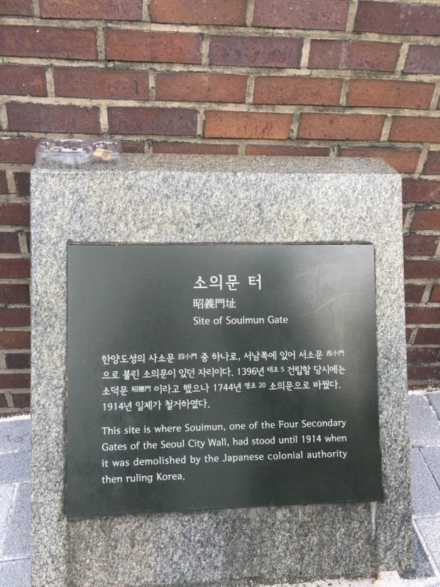 정동이 끝나는 사거리에 이르면 큰길 건너편에 강북삼성병원이 보이고 그 앞에 ‘돈의문 터’라고 적힌 담장 하나가 있었습니다. 사라진 돈의문(敦義門)을 애도하는 설치물 같았지요. 하지만 최근에는 이마저도 철거되었습니다.
