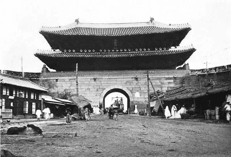 1398년에 처음 완공된 숭례문은 구한말 사진 속에서도 건재합니다. 불의 산인 관악산의 화기를 막기 위해 현판을 세로로 걸었습니다. 결국엔 불타버렸지만 말입니다. 흑~