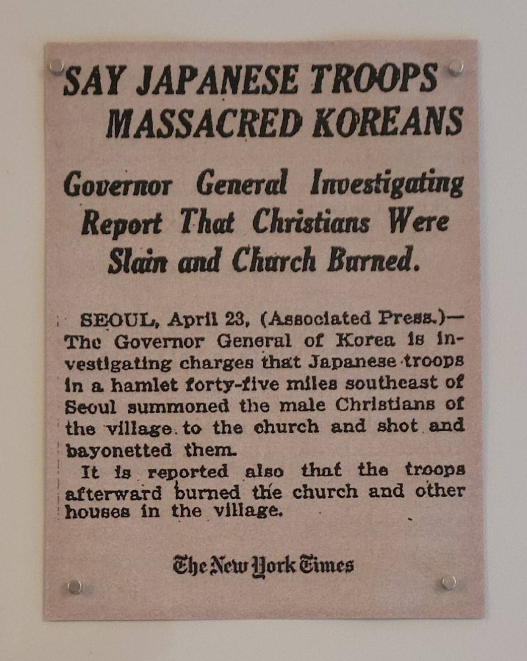앨버트 테일러(Albert W. Taylor)의 모습과 그가 3·1운동과 제암리 학살사건에 대해 취재한 내용을 실은 뉴욕타임즈 기사입니다. (출처: 딜쿠샤)