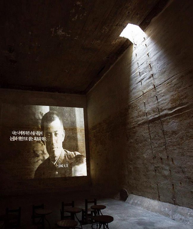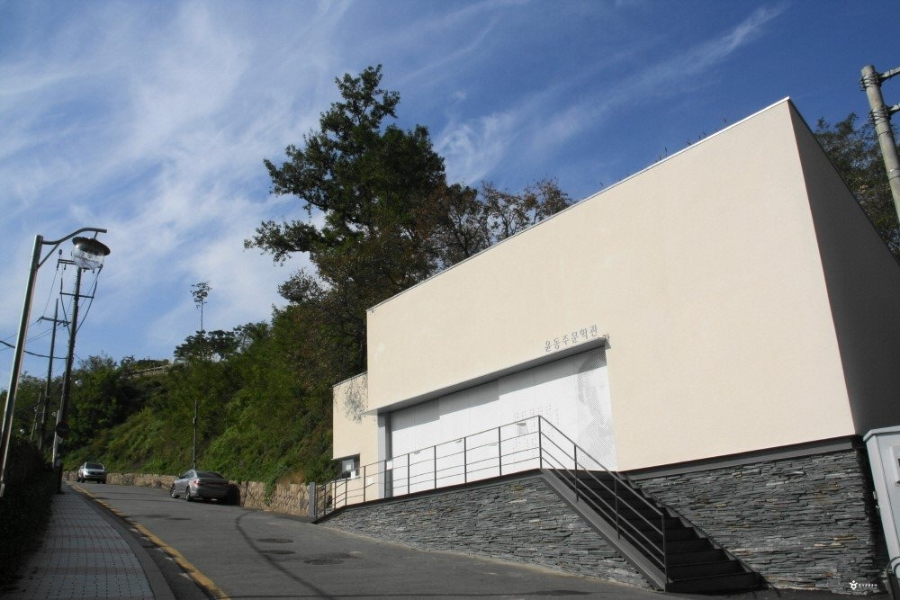 윤동주 시인의 언덕에서 200m도 채 되지 않은 곳에 2012년 '윤동주문학관'이 세워졌습니다. 불과 3개월 머물렀을 뿐인데 이 아름다운 항일 청년시인을 지나치게 관광상품화 하는 것은 아닌지 우려도 했지요. 그러나 다행스럽게도 이 작고 소박한 윤동주문학관은 호들갑스럽지 않습니다. 그의 유품 하나 없는 곳이지만 시인의 성품처럼 부끄러운 듯 말이 없고 말이 없지만 잔잔한 울림을 주는 공간이니까요. 이 건물은 지금은 철거된 청운아파트까지 수돗물 공급을 위해 수압을 높이던 수도가압장과 물탱크를 개조해 만들었습니다. 용도 폐기된 일상 공간의 감성적 변신이 놀랍습니다.