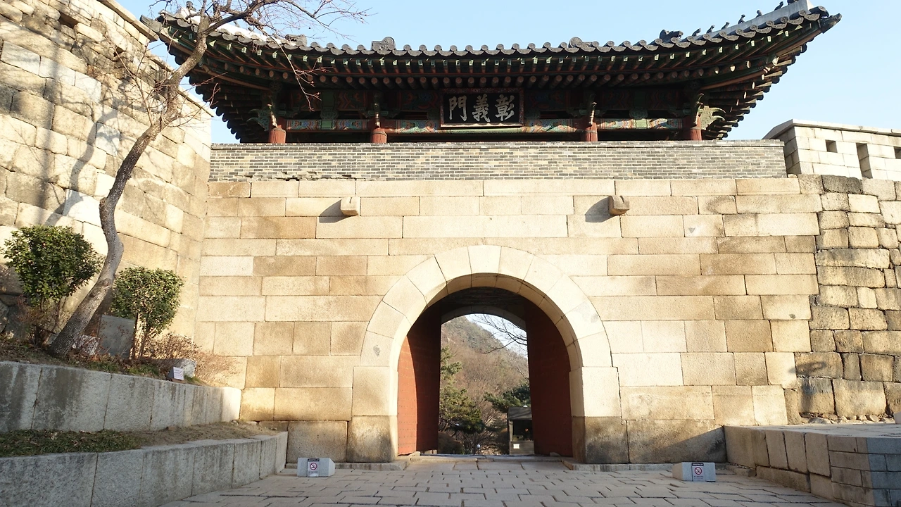 어느덧 한양 최고의 명산인 인왕산을 넘어와 백악으로 이어지는 경계에 섭니다. 지금은 많은 사람의 발길이 닿는 곳이 아니라 고즈넉한 느낌마저 드는 이곳에 숨겨진 보물처럼(실제로 창의문은 보물로 지정되어 있어요^^) 당당한 우진각 지붕의 고색창연한 문이 우리를 반깁니다. 이 문은 도성에 남은 6개의 문 중에서 제가 가장 좋아하는 '창의문(彰義門)'입니다. 도성의 북쪽에 있는 소문이란 뜻으로 북소문(北小門)이라고도 불리고, 이 문을 통해 개성을 오가던 사람들이 개성의 자하동처럼 계곡이 맑고 깊다는 의미로 자하문(紫霞門)이라고도 불렀지요. 창의문의 문루는 임진왜란 때 불타서, 1740년(영조 16) 다시 세우고 공신의 이름을 판에 새겨 문루 안쪽에 걸었습니다. 그 후로 보수공사를 거치며 지금껏 보존되어 온 한양의 사대문과 사소문을 통틀어 가장 오래된 문이기도 합니다.