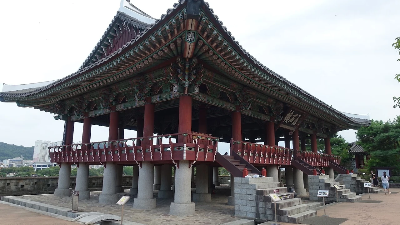 누각과 정자의 차이는 무엇일까요? 누마루의 유무입니다. 누마루가 있는 것이 누각입니다. 그래서 누각은 단층인 정자와 달리 2층 건물 형태를 띱니다. 장방형·육각형·팔각형 등의 평면구조를 가지고 있는 정자는 개인을 위한 공간의 성격이 강해 규모가 그리 크지 않습니다. 그에 비해 누각의 평면구조는 주로 장방형이며 정자에 비해 규모가 훨씬 큽니다. 궁궐이나 관아, 성곽, 사찰, 서원 등에서 공식적인 행사나 놀이를 위해 짓기 때문이지요.