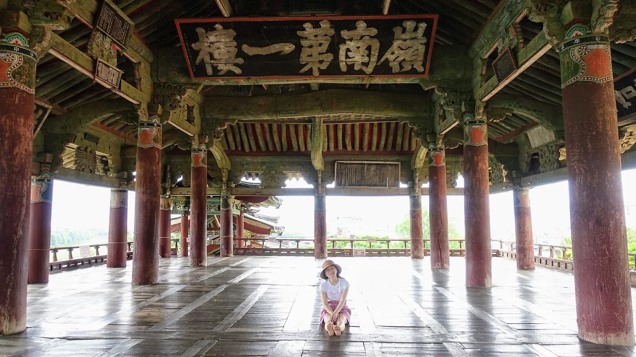 어느 방향에서 바라보든 호화로운 내부의 목조각과 단청 장식이 눈길을 끕니다. 영남루를 스쳐간 명사들이 남긴 수많은 편액을 둘러보는 재미도 쏠쏠하고요. 거대한 대들보에 걸린 ‘영남제일루(嶺南第一樓)라는 편액은 힘찬 글씨체로 인해 단연 돋보일 뿐 아니라 밀양 사람들의 영남루에 대한 자부심을 느끼게 합니다.