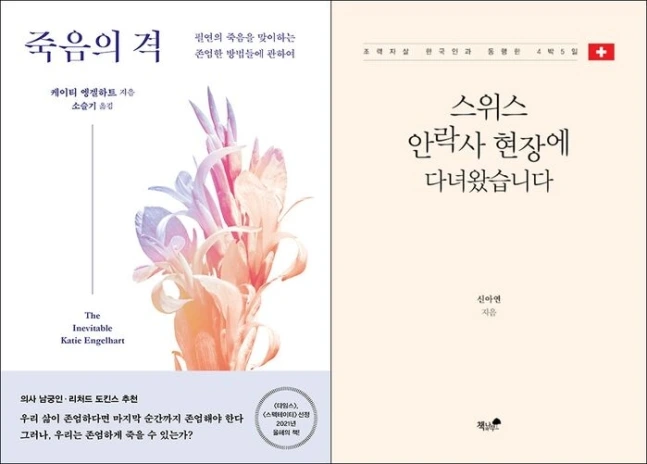 최근에는 조력사를 다룬 책들도 한 주 간격을 두고 잇따라 출간됐습니다. 외국 저널리스트가 쓴 ‘죽음의 격(원제:The Inevitable)’과 한국인 작가가 쓴 “스위스 안락사 현장에 다녀왔습니다”라는 책입니다. 후자는 암에 걸려 시한부 판정을 받은 한 호주 교포가 스위스에 가서 조력자살을 하는 과정을 지인인 저자가 4박 5일 동안 동행하며 지켜본 기록입니다. 아마 한국에서는 조력 자살을 동행 기록한 첫 번째 책일 겁니다.
