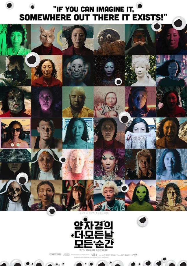 "에브리씽-"의 인기 비결은 아무래도 SF, 액션, 코미디, 드라마가 뒤섞인 '멀티버스(Multiverse)' 영화라는 점입니다. "에브리씽-"은 대규모 VFX 작업을 거친 마블 스타일의 멀티버스가 아니라 저예산으로 기발하게 B급 정서의 멀티버스를 구현했는데 이 점이 오히려 관객들을 웃고 울리는 촉매가 되고 있습니다.