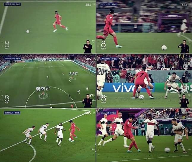 포르투갈의 코너킥을 수비수 김문환이 머리로 걷어 낸 공을 잡은 손흥민은 특유의 드리블로 약 70m를 질주하면서 총 3번을 뒤돌아 본다. 우리 진영에서 한 번, 중앙선 부근에서 한 번, 그리고 마지막 상대 진영 페널티박스 바로 앞에서 한 번.