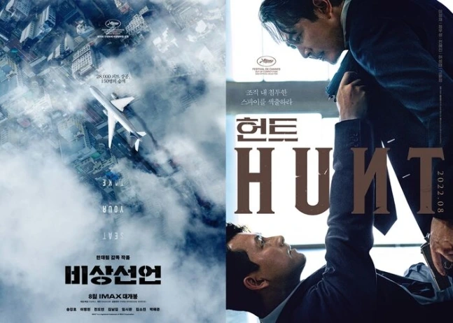 빅4 중에 마지막으로 개봉하는 영화는 이정재, 정우성 주연의 첩보액션드라마 “헌트”입니다. 이정재 씨와 정우성 씨가 “태양은 없다” 이후 23년 만에 함께 출연합니다. “태양은 없다”는 여러 스트리밍 서비스에서 볼 수 있으니 청춘에서 중년에 접어든 이들의 외모뿐 아니라 연기는 또 어떻게 달라졌을까 살펴보는 재미도 있을 것 같습니다. 특히 “헌트”는 이정재 씨의 감독 데뷔작입니다. “오징어게임” 이후 첫 영화이기도 하고요. 사실 장르적으로만 본다면 SF인 “외계+인”이나 항공재난영화인 “비상선언”에 비해 새로운 점은 별로 없다고 볼 수 있습니다. (“한산”은 사극이라기 보다는 사실상 ‘이순신’ 장르 영화지요) 하지만 역으로 “헌트”는 어느 시장에 내놔도 무난한, 그래서 여름 시장에도 딱히 위험부담이 덜한 전통적 장르 영화라는 점이 관객들로 하여금 선택의 부담을 줄여 준다고도 볼 수 있습니다. 게다가 이정재와 정우성이라는 배우 이름이 가져다주는 안정감 또한 작지 않지요. 익숙함과 낯섦 사이에서 이 영화가 얼마나 줄타기를 잘 했느냐가 흥행의 관건일 것으로 보입니다. “헌트”도 “비상선언”처럼 칸에서 월드 프리미어를 했습니다. 지난 5월, 75회 칸 영화제 비경쟁부문인 미드나잇 스크리닝 부문에서 상영된 영화입니다.