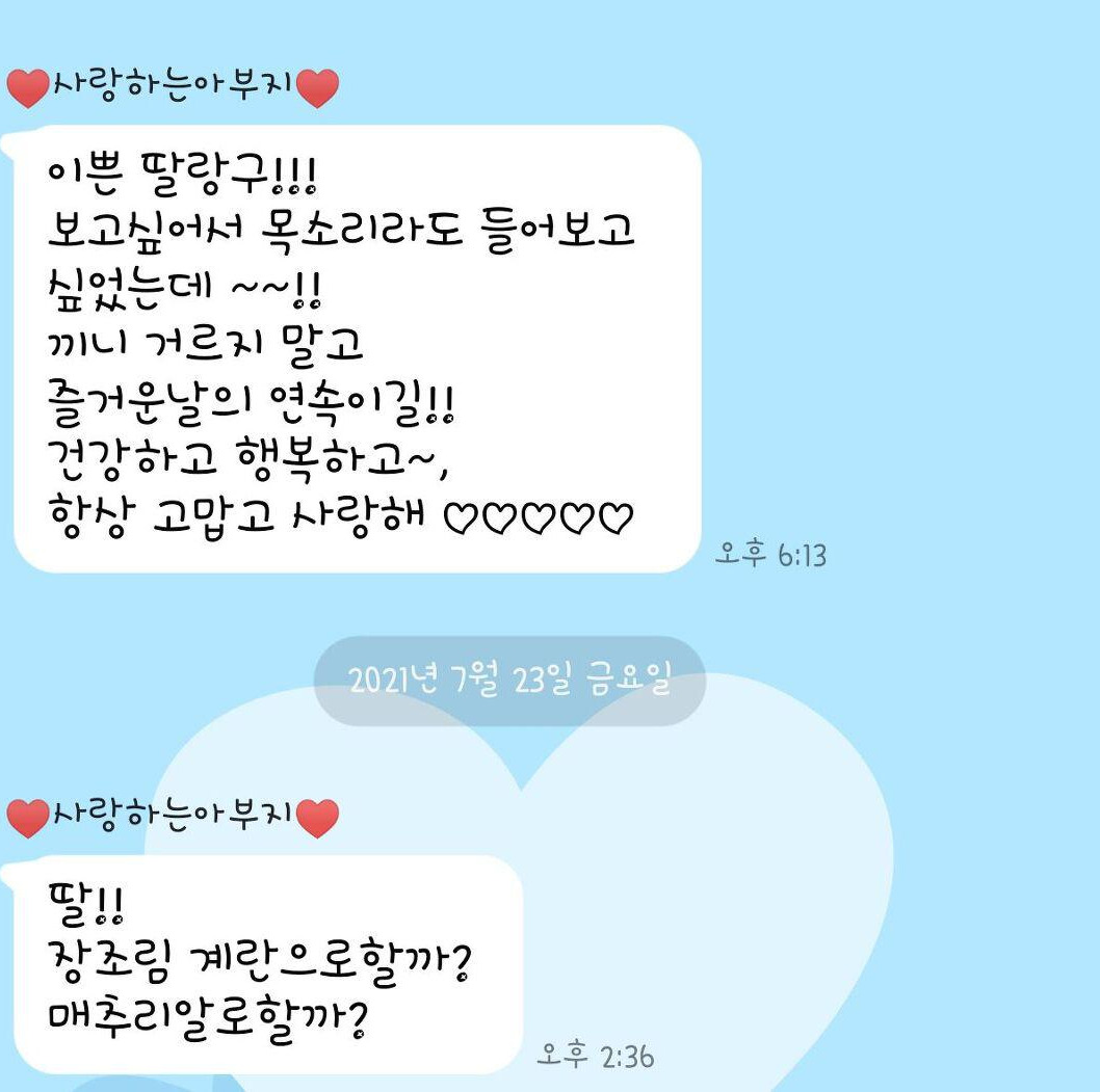 아 이모 오셨네요 네 저 주말이어서 잠깐 집에 왔어요 (집에 가실 때 용돈 주세요)