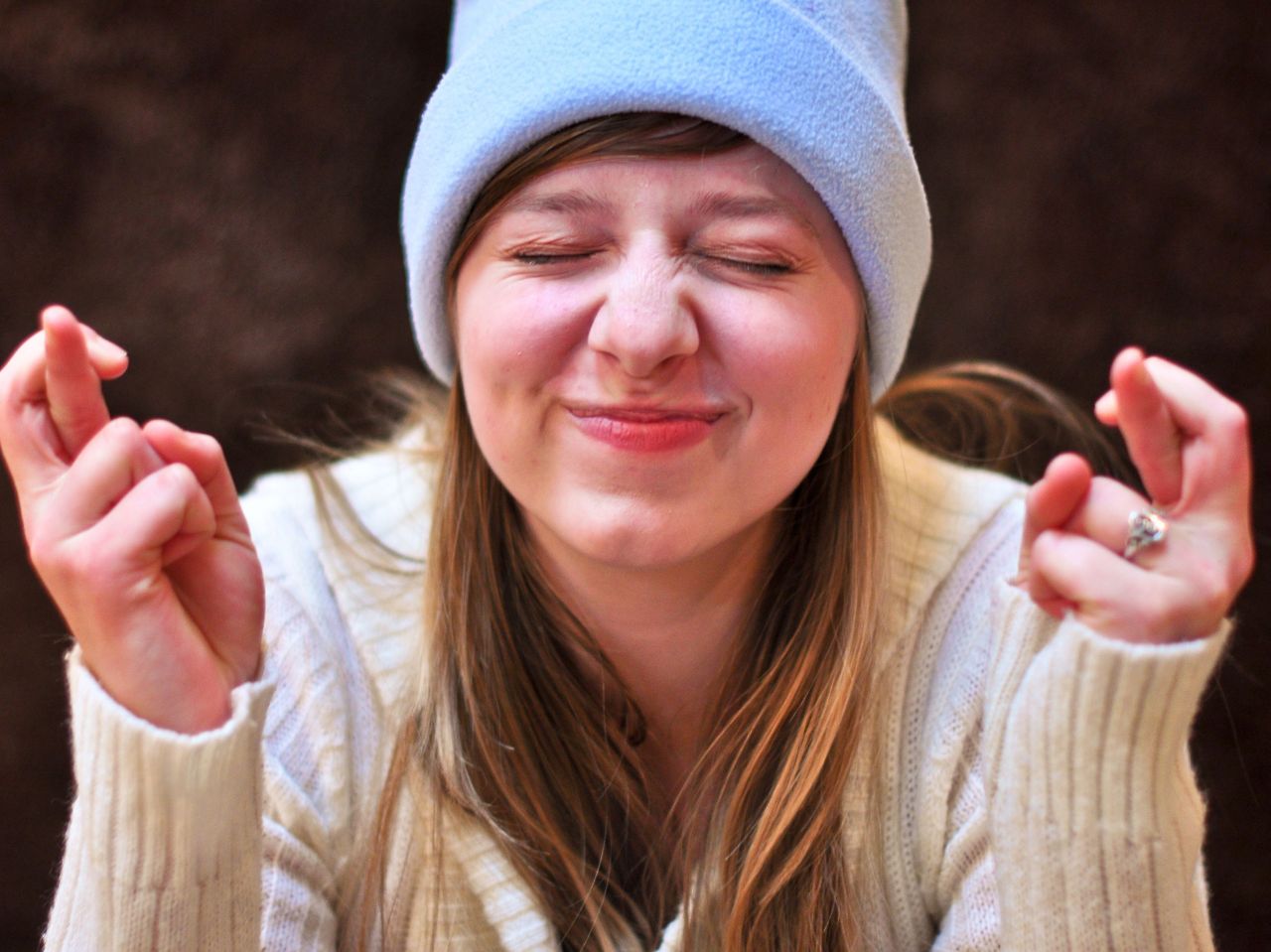 cross one's fingers 손가락을 십자로 겹치다, 는 말이다.