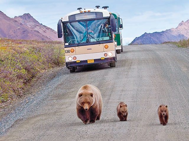 데날리 관광이라고 하면 물론 북한산 자락 산악회 용으로 사들인 그 등산복을 입고 ‘등반’씩이나 하는 것이 아니라, ‘데날리 국립공원’ 숲에 들어가 보는 것인데, 아무 차나 몰고 개인으로는 들어갈 수 없고, 5월 중순부터 9월 중순까지 원주민 협회에서 운영하는 버스를 타고 설명을 들으며 일종의 사파리를 즐길 수 있다. 운영 시간과 스케줄은 신청 인원에 따라 다르다지만 일단 7~8시간 정도 걸리는 모양이고, 중간에 내리거나 타는 것이 허용되지 않으니 노약자들이나 성격 급한 사람들은 힘들 수도 있다.