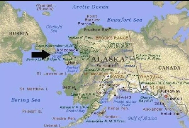 알래스카를 미국이 러시아에서 헐값에 사들인 것은 다들 아는 일이지만, 러시아는 한국 북쪽으로 중국을 살짝 건너서 있는 나라이고, 알래스카는 그 동쪽 끝에 바로 붙어 있으며, ice age 빙하기에는 알래스카와 러시아가 얼어붙은 베링해로 연결되어 있었다는 것은 모르는 분이 계신다.