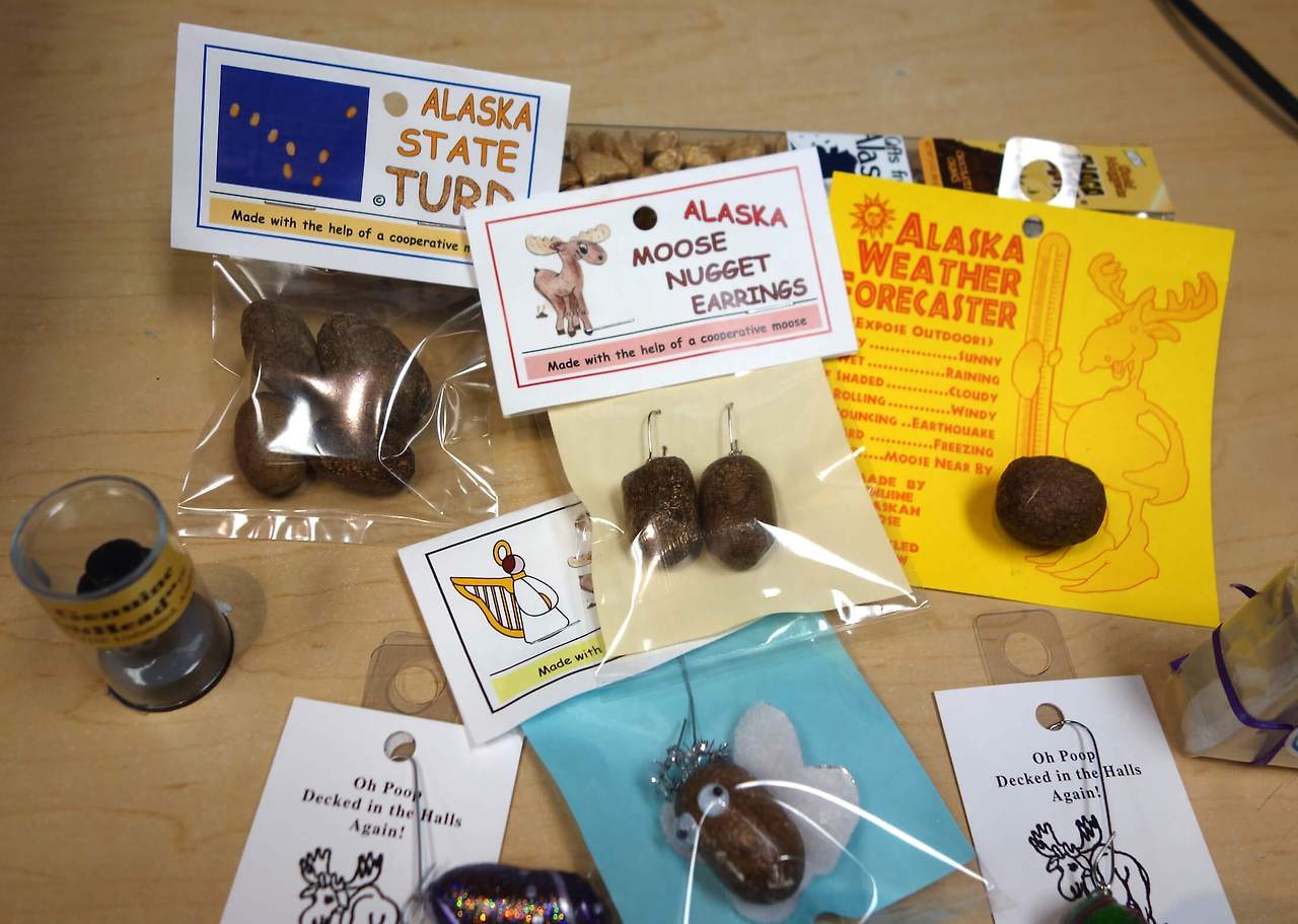 초식동물이라 그런지 신선한 것(!)도 별 냄새는 나지 않지만, 기괴하게도 이 실제 너겟을 사용한(!) 귀걸이나 열쇠고리, 아니면 '모양만' 본뜬 (무스 똥을 먹는 것이 건강에 특별히 해로운지는 모르겠지만 초식동물이라 별로 맛이 없을 테니 간식으로 팔 것 같지 않으니 믿어주자) 초콜릿 간식 등의 알래스카 기념품을 만들어 팔기도 하고 있으니, 비위가 강한 분들이나, 본인은 비위가 약하지만, 비위가 강한 상사에게 선물을 준비해야 하는 분들은 참고하시기 바란다.