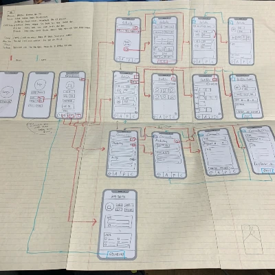 당시 디자인 툴을 쓸 줄 몰랐던 나는 종이 위에 연필로 와이어프레임을 직접 그려서 가져갔다. 아무것도 할 줄 몰랐던 때의 가장 순수한 열정이지 않았나 싶다.