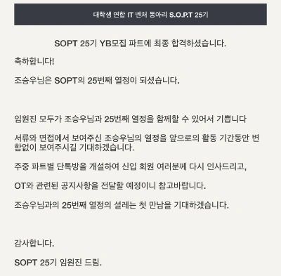 그 후 솝트 25기 OT가 진행된 2019년 9월 25일은 아직까지 내 인생 가장 중요한 하루다.