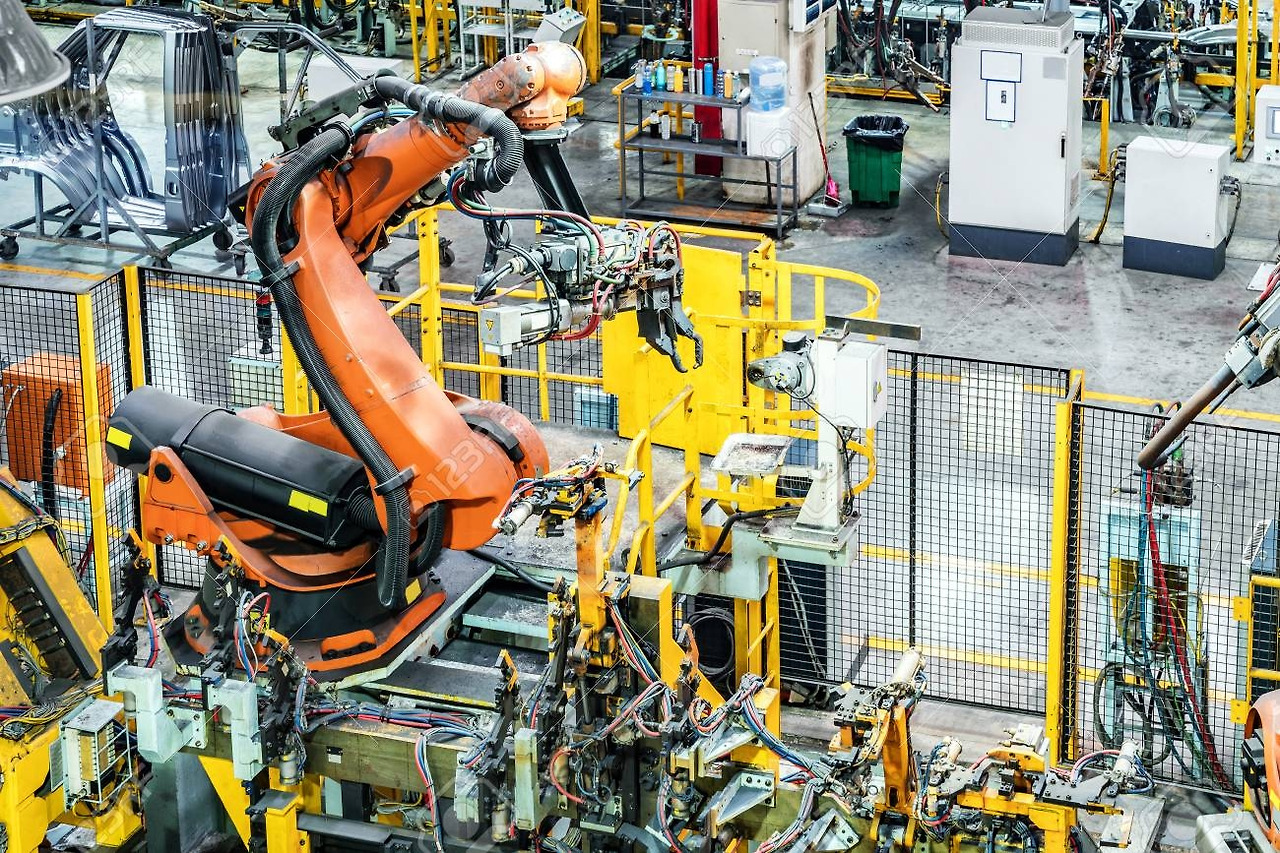 현대자동차 생산라인의 로봇