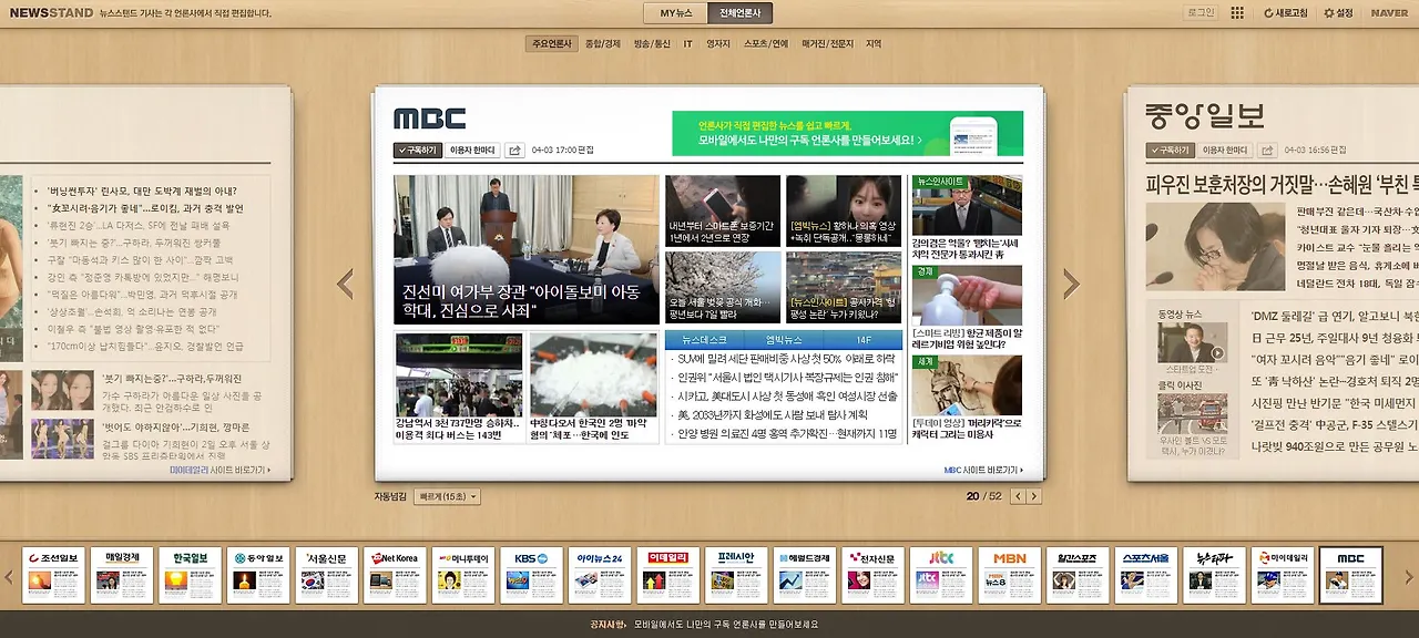 [그림1-11] PC웹에서 본 네이버 뉴스스탠드의 모습