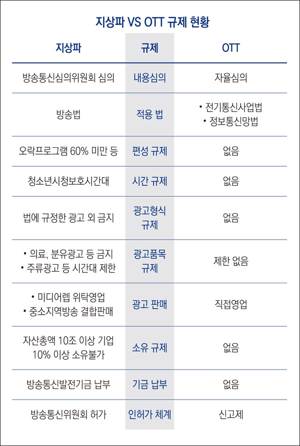 강형철 숙명여대 미디어학부 교수는 “애니메이션 등 편성 장르를 제한하는 등의 규제는 현실에 맞지 않다. 이런 측면에선 자율성을 줘야 한다. 사후심의 제도도 개선해야 한다”면서도 “다만 지상파는 한국 방송의 표준이고, 품질을 만드는 기준점인데, 규제 자체를 없애는 건 위험하다고 생각한다. 최소한 공영방송은 절제가 필요하다”고 했다. 강 교수는 재원 측면의 경우 “우선적으로 방송통신발전기금부터 손 볼 필요가 있다. 공적 의무를 수행하라고 국가보조를 해야 하는 상황인데 거꾸로 돈을 걷고 있다”고도 했다.