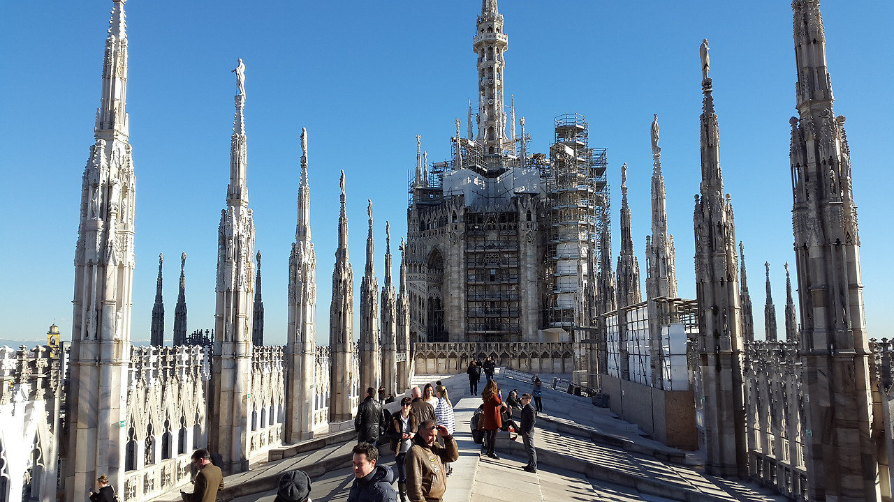 또 테라스에서 펼쳐지는 밀라노 시내의 탁 트인 전망도 볼만 하다. 물론 겨울임에도 불구하고 (로마는 겨울이 우기라고 한다.) 구름 한 점 없는 쾌청한 날씨가 허락되었기에 더 감동을 더했을 것이다.
