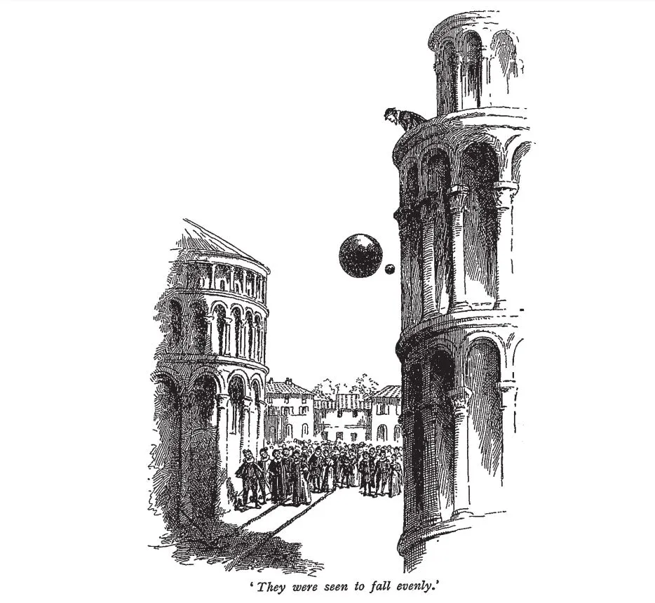 그러나 이것은 제자였던 비비아니(Viviani)가 지어낸 일화라고 한다. 지어낸 일화라고 해도 정말 그럴듯하고 멋지지 않은가? 기울어진 피사의 사탑과 갈릴레오 갈릴레이, 그리고 무게가 서로 다른 추를 떨어뜨리는 실험이라니.