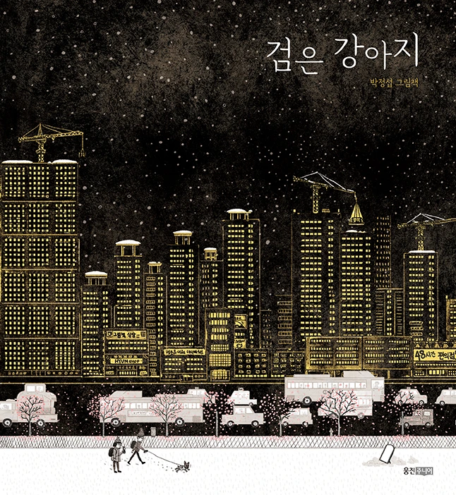 그림은 온통 어두운 무채색으로 그려져 있습니다. 하얀 종이 위의 ‘검은 강아지’는 더욱 까매 보이고 더욱 비참해 보입니다. 하늘에서 이 모든 것을 조용히 지켜보고 있던 달과 별 만이 노랗게 반짝입니다. 많은 그림으로 보여주지 않아도, 화려한 색깔로 우리의 눈을 사로잡지 않아도 우리의 마음을 울리는 것이 바로 그림책의 매력입니다.