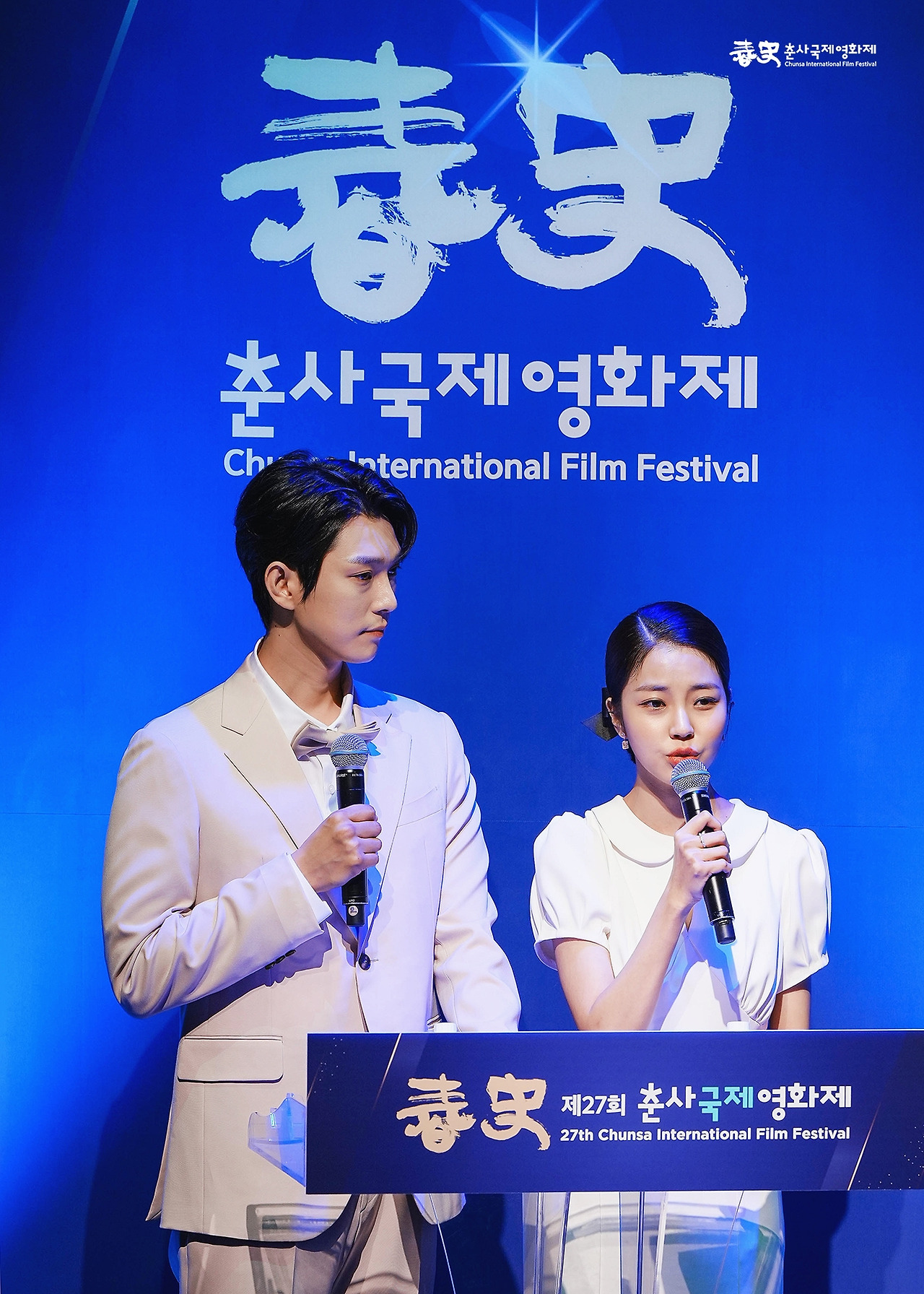 27회 춘사는 관객과 대면하는 시상식으로 개최됐다. 단독 사회자보다는 더블 MC가 어울린다고 판단했다. 유명한 배우를 쓰는 것도 좋지만, 우선 2022년의 컨셉인 "Move Again"에 어울리는 선택을 고민했다. 기회를 주는 시상식은 어떨까? 그렇게 신인 배우 김예은, 지은호가 사회자로 낙점됐다. 김예은 배우는 최근 <닥터 차정숙>의 문채윤 역할로 크게 주목받았다. 기회가 더욱 많아졌으면 좋겠다.