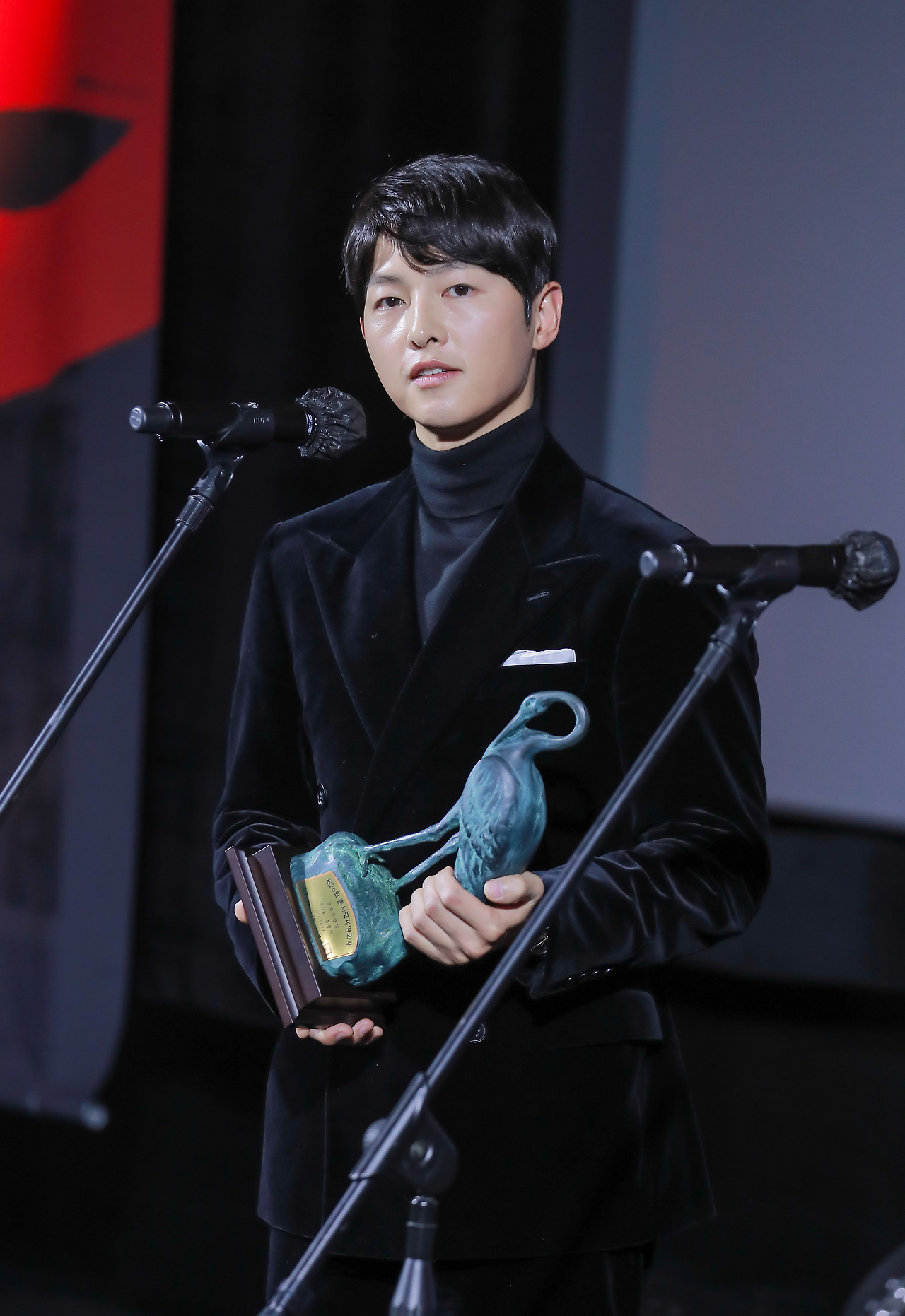 너무 감사드립니다. 승리호는 저를 비롯해서 김태리, 진선균, 유해진 등 굉장히 걱정을 많이 한 영화인데 현장에서 스태프분들 덕분에 굉장히 수월하게, 쉽게 최첨단 작업으로 촬영한 영화입니다. 영광을 스태프분들에게 돌립니다. 이 영화는 많은 고민과 생각 끝에 함께한 영화인데 선택할 수 있게 해 준 것에 중심에는 조성희 감독님 덕분이라고 믿어 의심치 않습니다. 많은 영화인 선배님들 덕분에 저희가 현장에 있지 않나 싶습니다. 다시 한번 큰 상을 주셔서 감사합니다. by 송중기