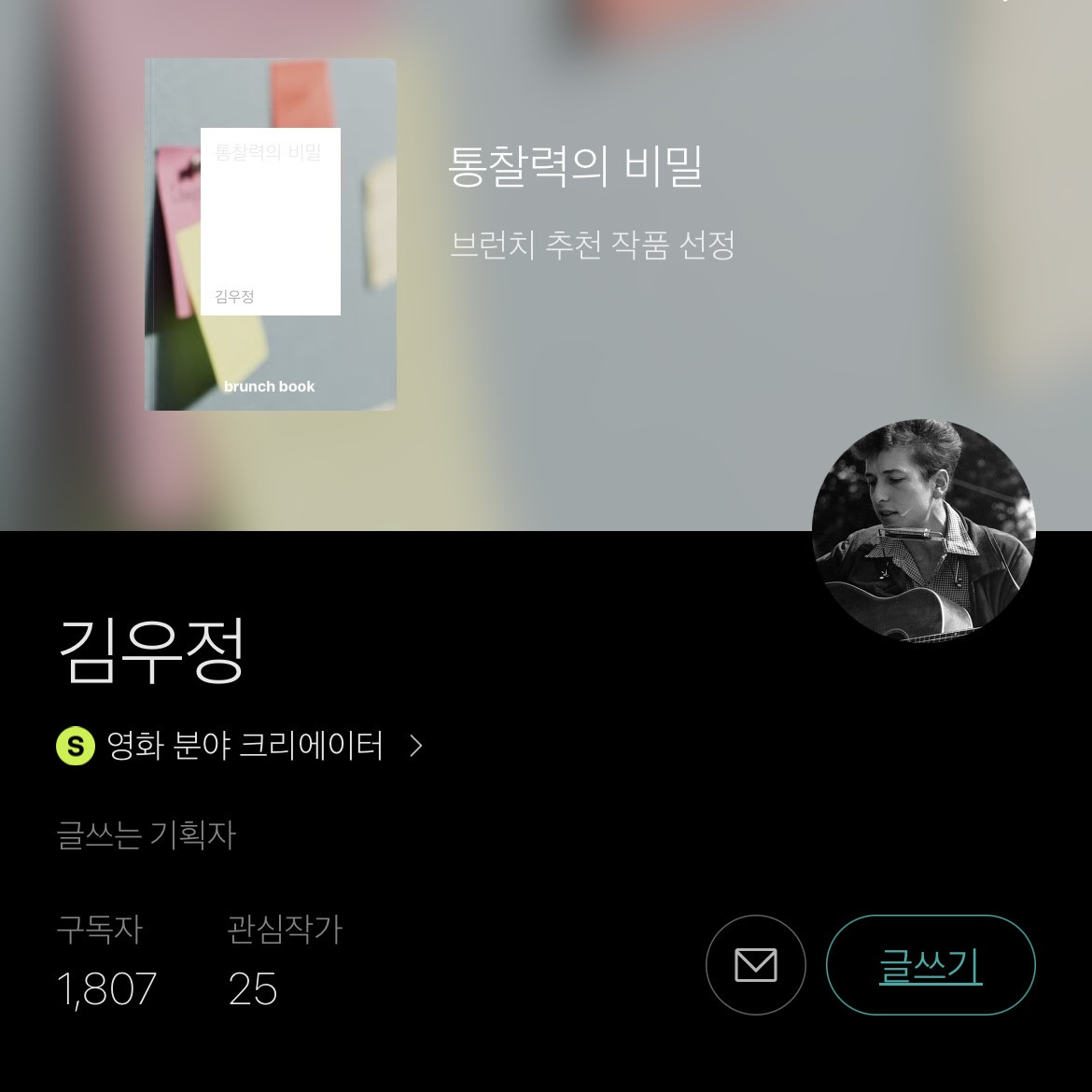 브런치의 영화 크리에이터가 되었다. 얼마 전에는 총감독으로 봉직했던 춘사국제영화제 삼 년의 기록을 브런치 북으로 출간하기도 했다. 영화제 총감독의 역할과 시상식의 숨은 이야기를 담담하게 적으며 감사의 기록을 정리했다. 제목은 내가 직접 만든 영화제의 슬로건이었던 "영화를 봄니다"로 결정했다. 좋은 인연이 닿는다면 출판도 가능할 것 같다. 그리고 이제 크리에이터가 되었으니 새로운 연재를 준비해야겠다. 좋은 의견을 기다립니다.