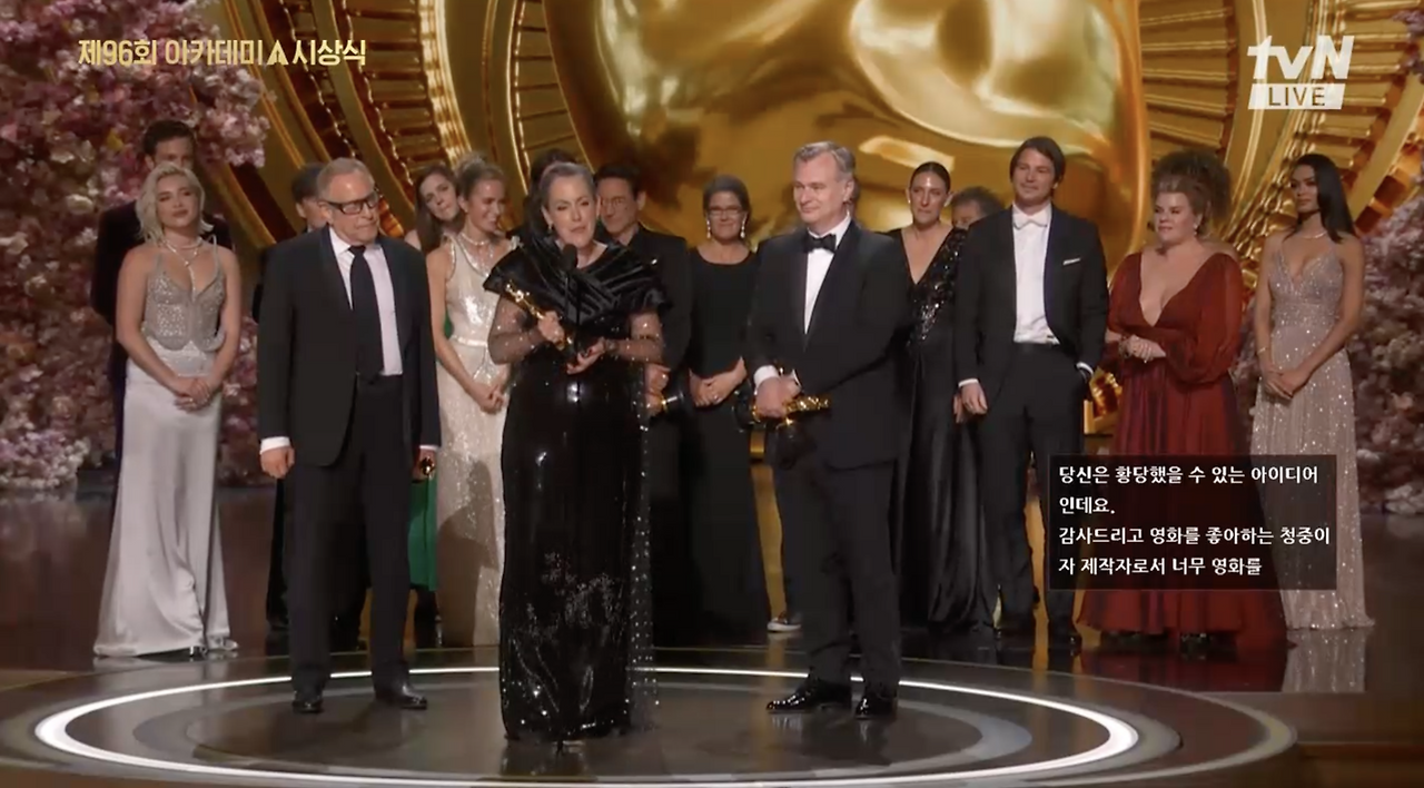 올해는 특별한 공연이 있었다. 지난해 세상을 떠난 영화인들을 기리는 ‘인 메모리엄’ 무대였다. 안드레아 보첼리와 아들이 함께 부른 ‘타임 투 세이 굿바이’가 시상식장에 울려 퍼졌다. 음악이 흐르는 배경에는 이제 고인이 된 매튜 페리, 라이언 오닐, 류이치 사카모토, 안드레 브라우어 등의 생전 모습이 등장했다. 그리고 故이선균 배우의 모습이 스크린에 비쳤다.