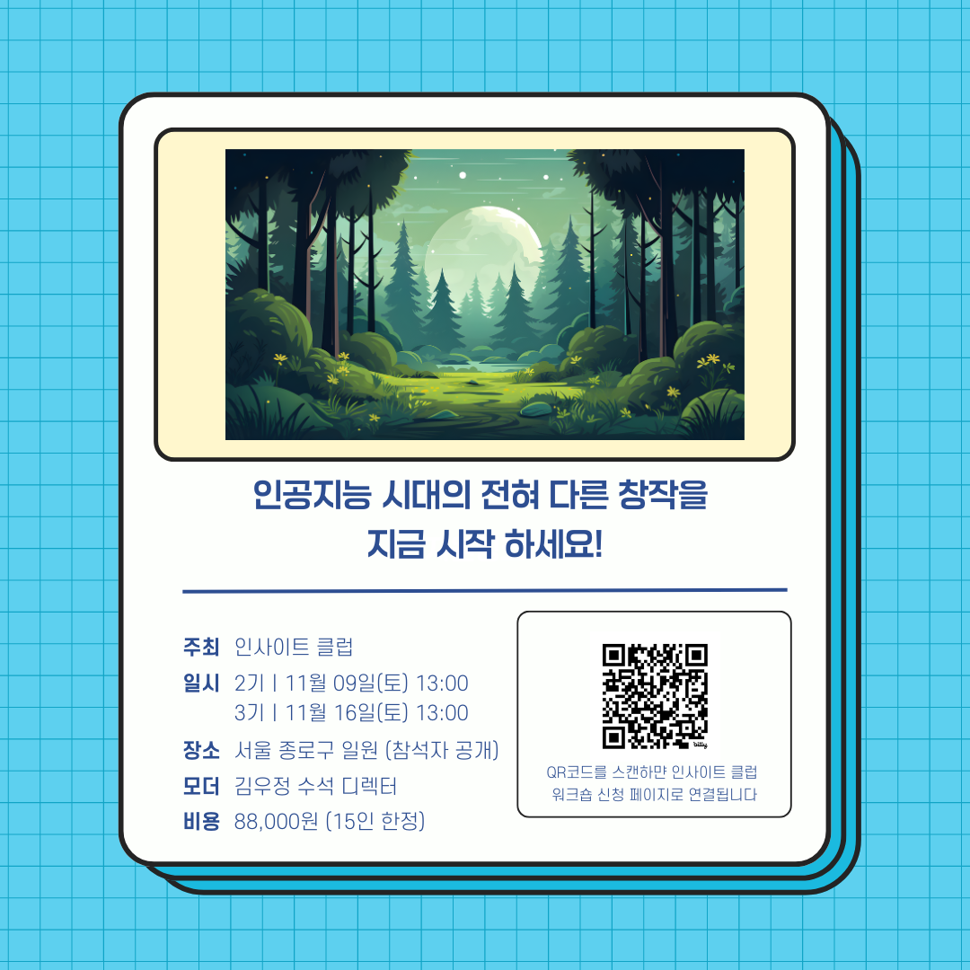 본 과정은 15인 한정으로 진행되는 1Day 코스로, 선착순으로 마감됩니다. 신청 후 결제하시면 등록이 완료됩니다. 곧 신청이 마감됩니다. 본 과정은 인사이트 클럽에서 운영합니다. ↣ 워크숍 신청하기