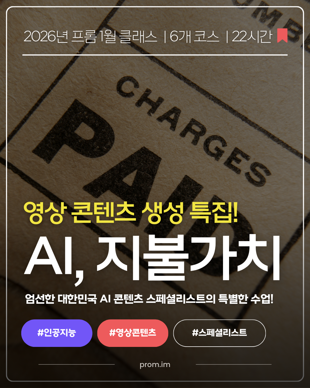 꼭 읽어보세요ㅣ프롬은 2026년 1월, AI 콘텐츠 스페셜리스트 특집 수업을 준비했습니다. 대한민국 과학기술정보통신부 장관상 수상 감독의 특강, 대형 광고 캠페인 CD의 AI 컨버전 전략, 그리고 세계 최고 수준의 AI 생성 엔진을 하나의 워크플로우로 사용하는 방법까지. 프롬 수업의 새로운 시즌이 시작됩니다. ➡ 1월 수업 확인하기