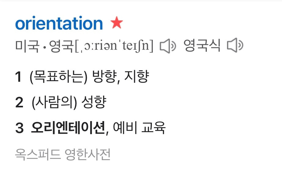 오리엔테이션의 의미를 찾아보니, 마치 ‘인생 서사에 도착하는 글쓰기 워크샵’ 오리엔테이션을 위한 사전 같다. 1. 내 삶이 도착하고자 하는 목표에 맞는 방향과 지향을 찾아가는 글쓰기 2. ‘나’라는 사람의 성향을 알아가고 내 곁의 타인에 대해서도 알아가는 글쓰기 3. 인생 서사를 쓰면서 새롭게 살아가기 위한 예비 교육으로서의 글쓰기